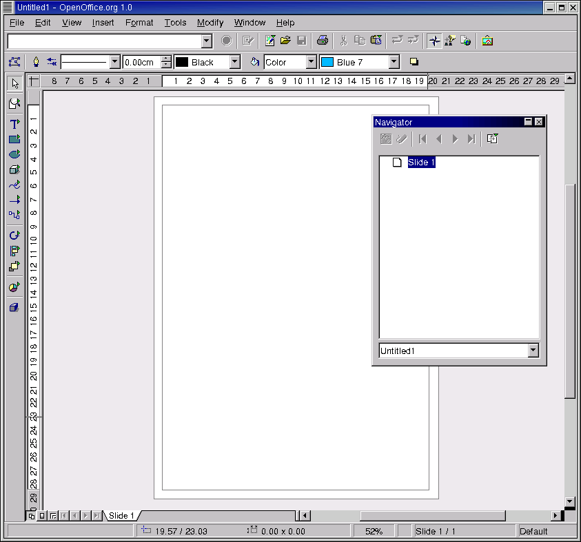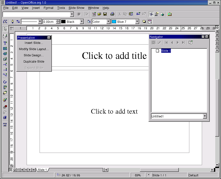 OpenOffice Impress - presentatsioonigraafika moodul. Suudab kasutada MS PowerPoint faile.