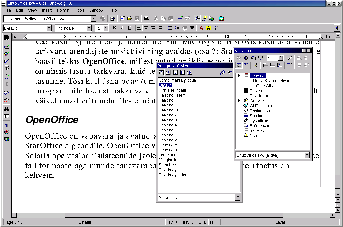 OpenOffice Writer - tekstitöötluse programm. Praktiliselt võrreldav MS Wordiga.